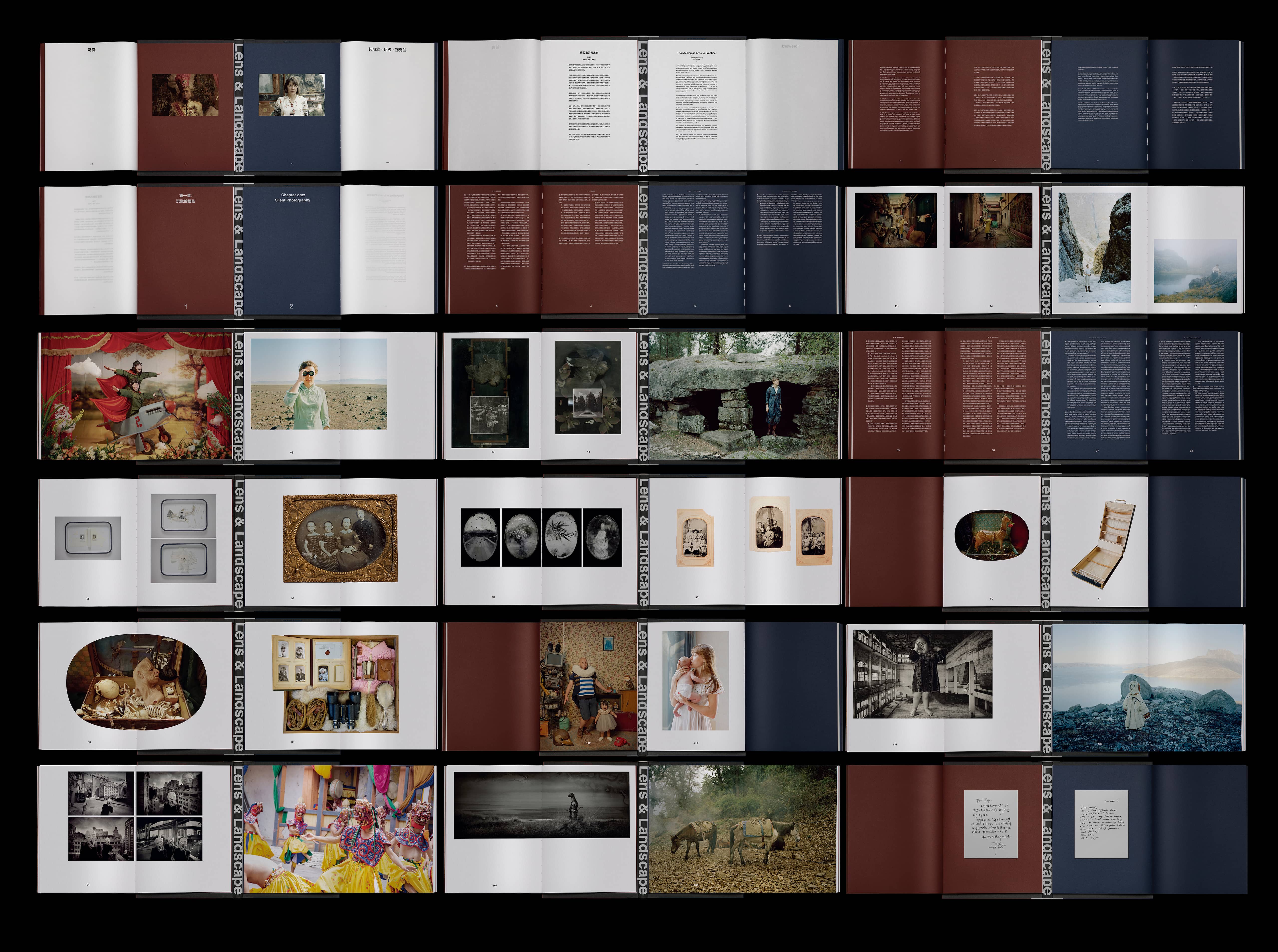 书中两位摄影艺术家就五个主题展开讨论,配合这五个主题出现的摄影作品之间也构成了一场视觉对话。书籍设计找到了一种创新的装帧方式:把书分成两册(一人一册),由一个书夹把两册书连接在一起。最佳的阅读方式是把两本书平铺在桌面上,向两边同时同步翻阅。书的页码横向在两本书之间跨越,一个展开页包含四页,连贯的四页中两位艺术家的摄影作品根据明晰的视觉线索形成互文与对话。