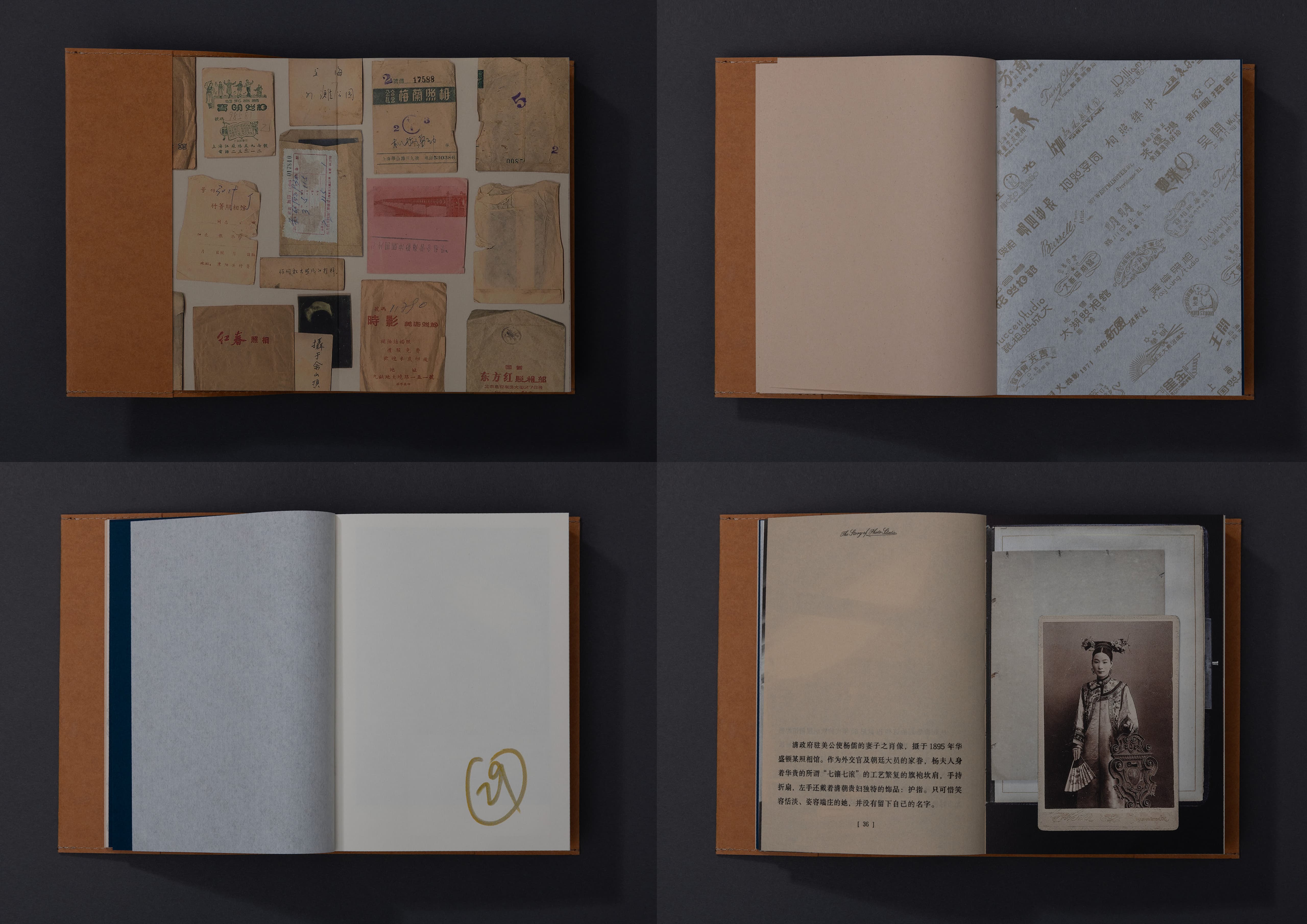 The content of this book comprises old photographs collected by the renowned photographer Ma Liang. The book’s design resembles a journal, with old photographs scattered across the cover, creating a strong sense of immersion. Opening the book, the traces of time immediately greet the reader. The preface is printed in monochrome on rustic paper. The book is divided into eight chapters, each designed with the photo studio logos extracted from the old photos, printed in matte gold, and paired with blue pages to create the chapter sections. Each photograph is accompanied by brief text, narrating the passage of time, with photo studios and people on paper emerging in front of you. Decoding each piece of material, I found a way to construct the narrative logic of the entire book: the images and text are printed on two types of paper with different weights and colors, alternating between thin and thick, soft and hard, smooth and rough, monochrome and four-color printing. These subtle variations in texture enhance empathy, as the book’s emotional depth stems from countless details. Flipping through it feels like browsing an old photo album.